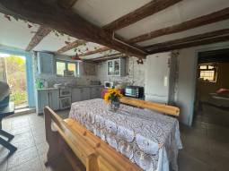 First floor: open plan kitchen with dining room, New electricity system, new Re enforced floor finished with tiles,Exposed wooden beams, New plumbing, big lounge with fireplace, wooden natural floor, Double glassed wooden windows.