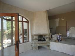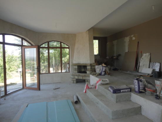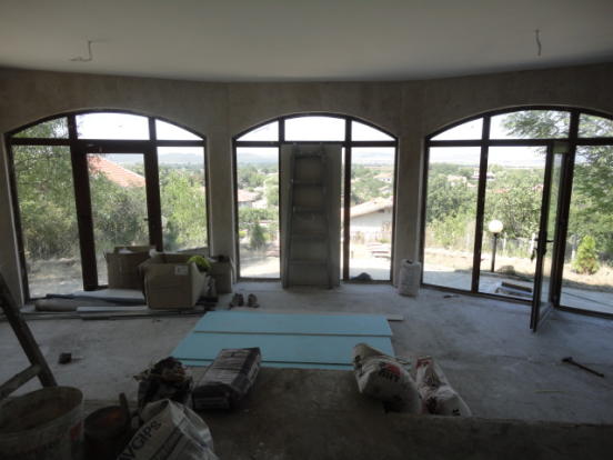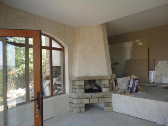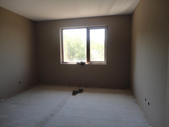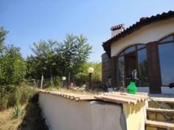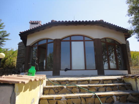 A stunning newly built house, which offers fabulous accommodation of 100 sq.m. This lovely property is set in ground of 1000 sq.m. in this most impressive of private, open views and fresh air setting. It is only 20 min drive to the nearest beach and Burgas International Airport. The property is built on single floor and consists of a veranda with concrete floor finished with Natural stones, corridor, a bathroom with toilet, big living room +Fireplace, dining room with open plan kitchen and two Spacious Bedrooms. The bathroom will need to be tilled and fitted with tabs, sink, toilet, shower set, boiler - THIS IS INCLUDED IN THE PRICE. Floors are concrete and will need to finished with laminate or tiles - ALSO INCLUDED in the price, walls are plastered and and painted. Ceilings are finished with plaster boarded and insulation. Windows are PVC, brown, double glazed. Internal doors are MDF. Front door of the house and back door are also PVC double glazed. The house is supplied with water and electricity. New septic tank has been installed. The property is in excellent condition, and needs finishing of the floors(included in the price), and new furniture. It is rendered, insulated and painted outside in nice mild color. The property has lovely landscaped garden of 1000 sq.m and TOP Elevated Location. There is stone in the garden as well as a few fruit trees and rye-grass. The whole plot is surrounded by stone, decorated wall with metal railing!