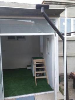 It consists of a small porch, corridor and three bedrooms with concrete floors and white washed walls. There is ground floor with corridor, big bedroom and kitchen, windows and doors are UPVC; walls and ceilings are plastered, white-washed.