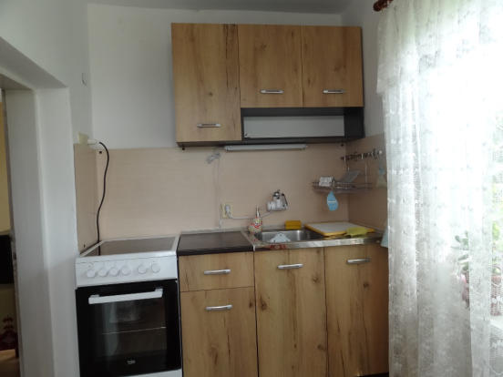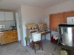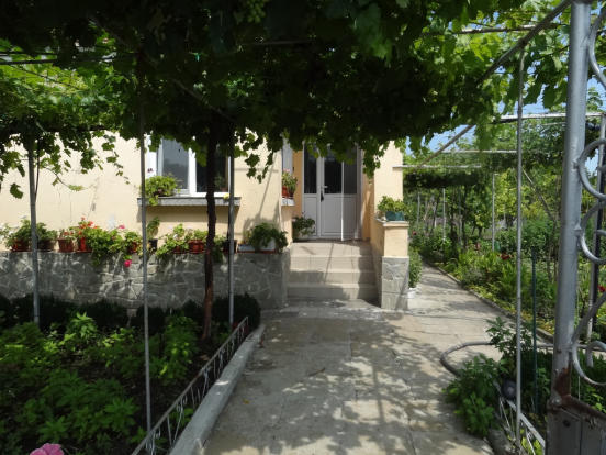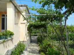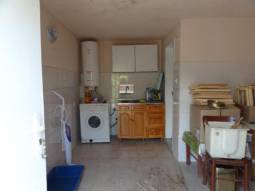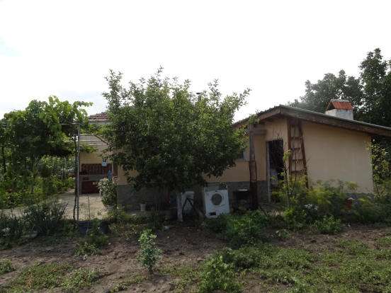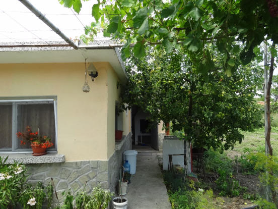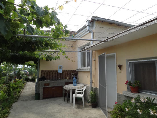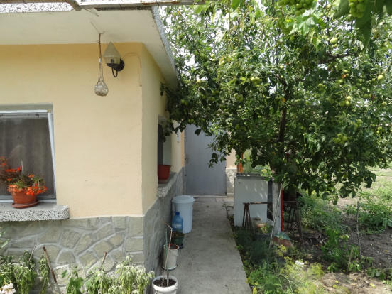 The house is Bungalow consists of:  corridor, big entrance hall, kitchen with fitted units, 2 bedrooms, bathroom/wc, living room Flooring is tiles or laminated, walls are plastered and painted; ceilings are plaster-boarded and painted. The bathroom is tilled and fully fitted. There is also wooden veranda of 5 sq.m. The whole property has outside insulation. There is a summer kitchen with one more bedroom and living room,