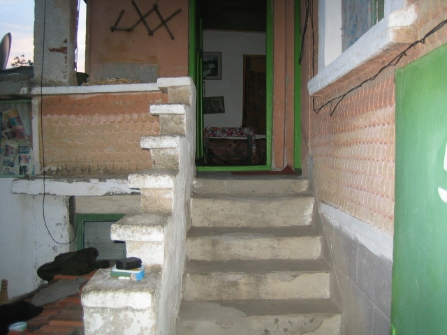 The ground floor consists of a corridor two rooms with wooden beam ceilings used at the moment for keeping jars and a big cellar. An outside staircase leads to the second floor which offers big corridor and two large bedrooms. The house does not need major repair work, only the walls on the first floor needs to be replastered and of course relocation of a bathroom/WC.
