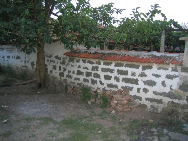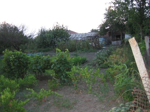 Another great advantage is the presence of a septic tank. Electricity and running water are available in and out. Just in front of the house there is s nice flower garden arranged with vine arbour and a lot of fruit trees. There isn't a telephone line yet, but one can be installed easily and this does not take much effort. There is parking space for a car in front of the house and a suitable gate and asphalt road. The garden is big, flat, sunny, well maintained with a lot of vegetables and greenery. There is a big vine yard as well.